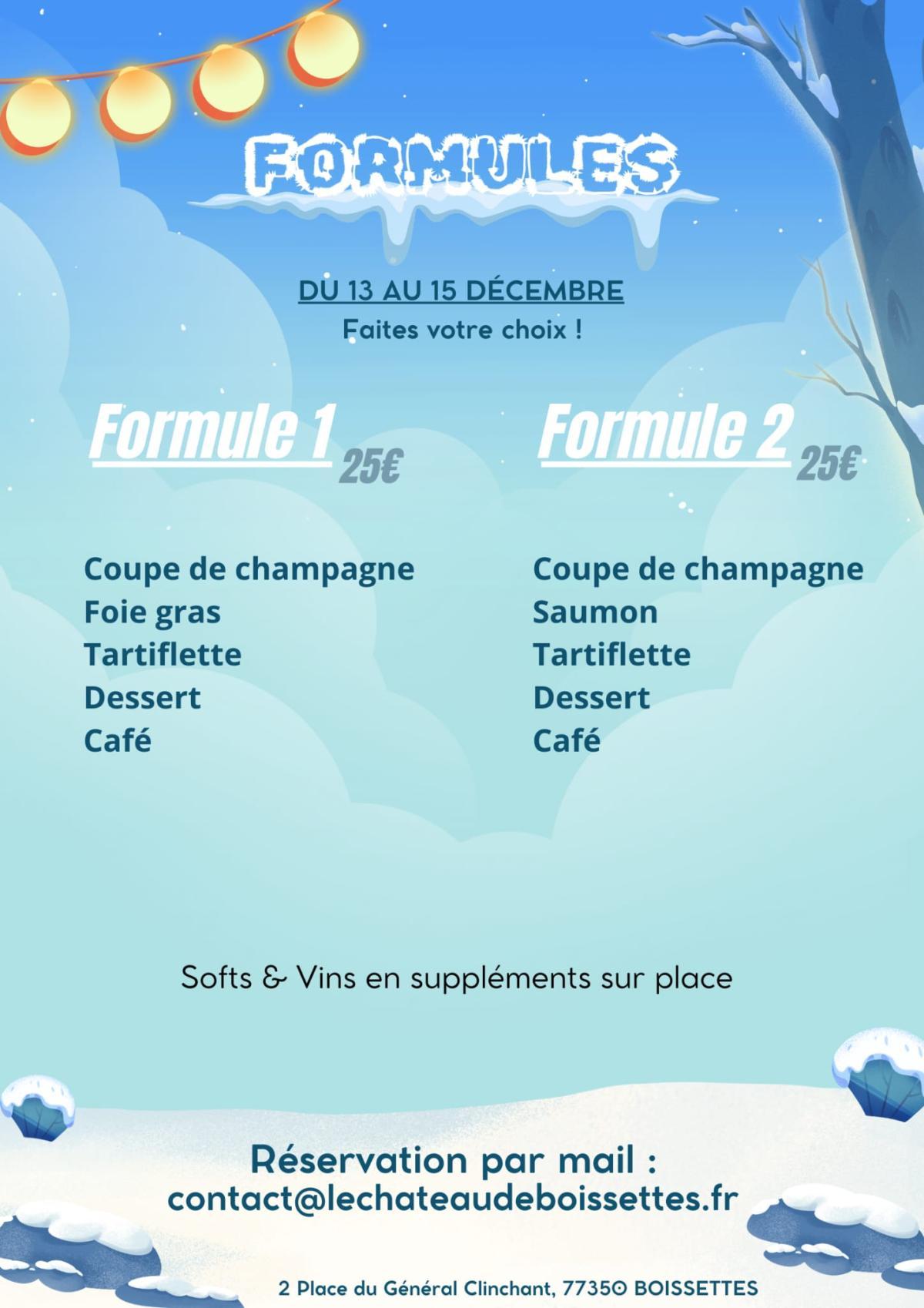 Sous réservation par mail: contact@lechateaudeboissettes.fr