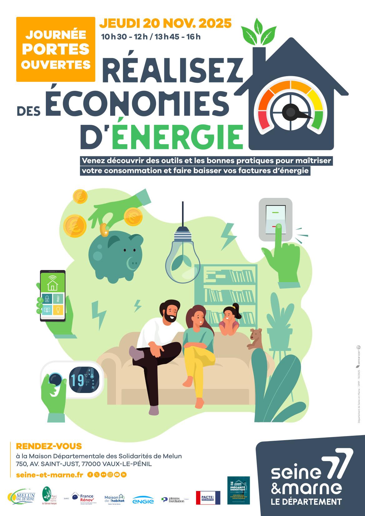 Découvrez les économies d'énergie, les dispositifs de subventions et la maitrise de sa consommation à la Journée Portes Ouvertes, jeudi 20 novembre 2025 de la Maison Départementale des Solidarités de Melun.