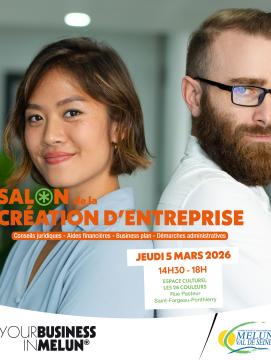 La Communauté d’Agglomération Melun Val de Seine organise le Salon de la création d’entreprise, le jeudi 5 mars 2026, de 14h30 à 18h, à l’Espace Culturel Les 26 Couleurs à Saint-Fargeau-Ponthierry.