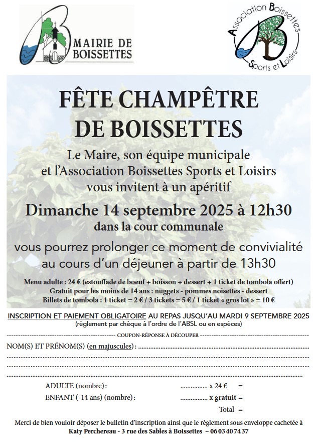 Si vous venez de vous installer à Boissettes, n'hésitez pas à participer à ce déjeuner convivial.